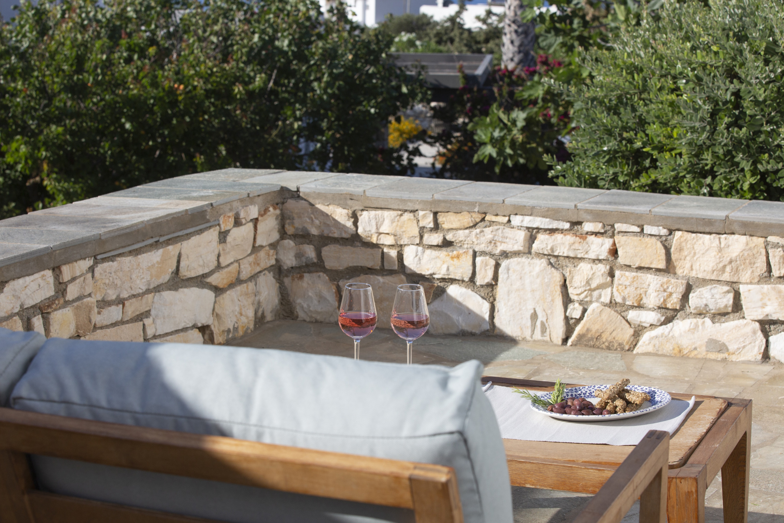 You will have exclusive use of its large garden full of trees and aromatic plants. The residence’s large shaded terrace has a built double bed. There you will be able to relax day and night, take in the stunning sea and Paros views or have a bite to eat and something to drink during the gentle summer evenings.