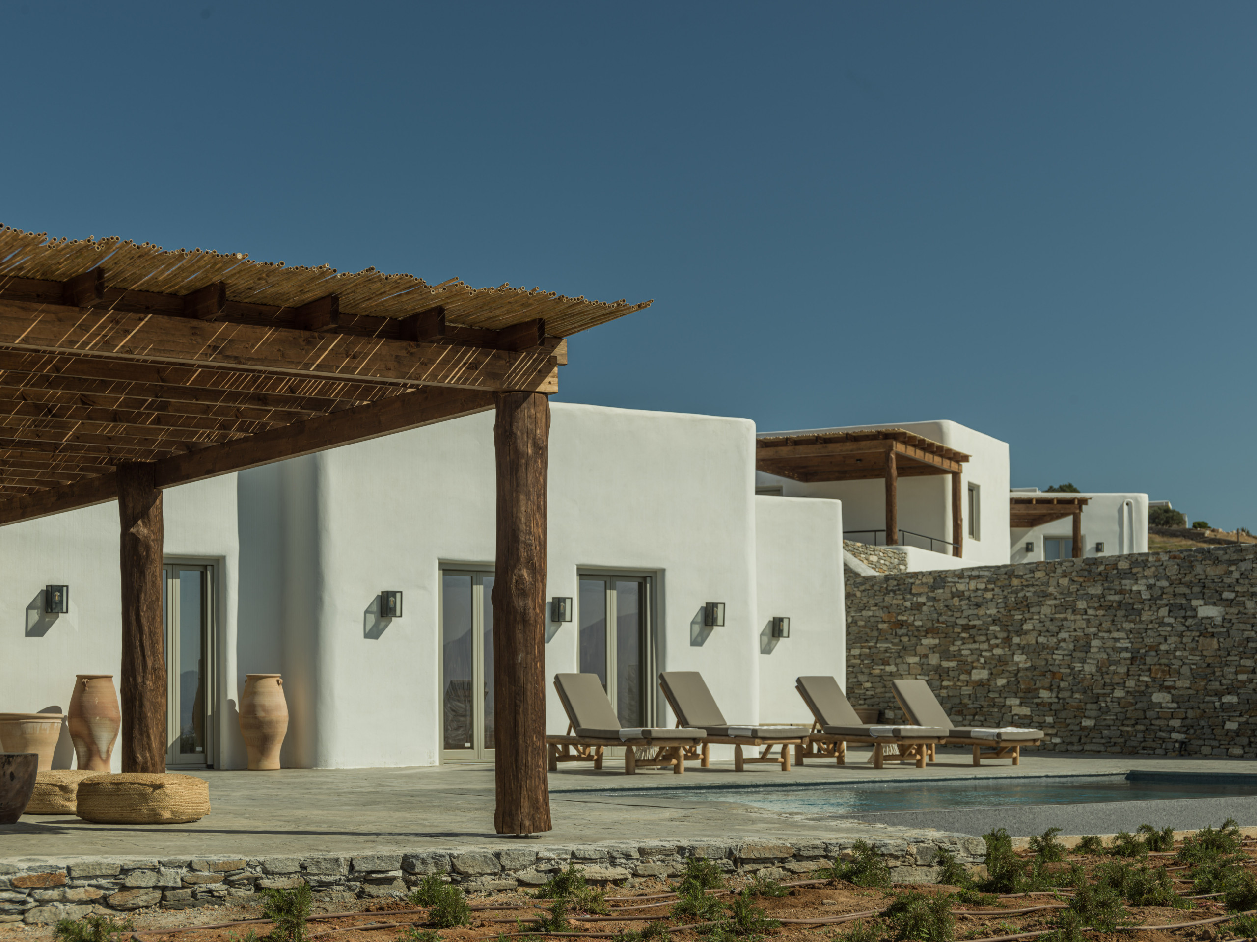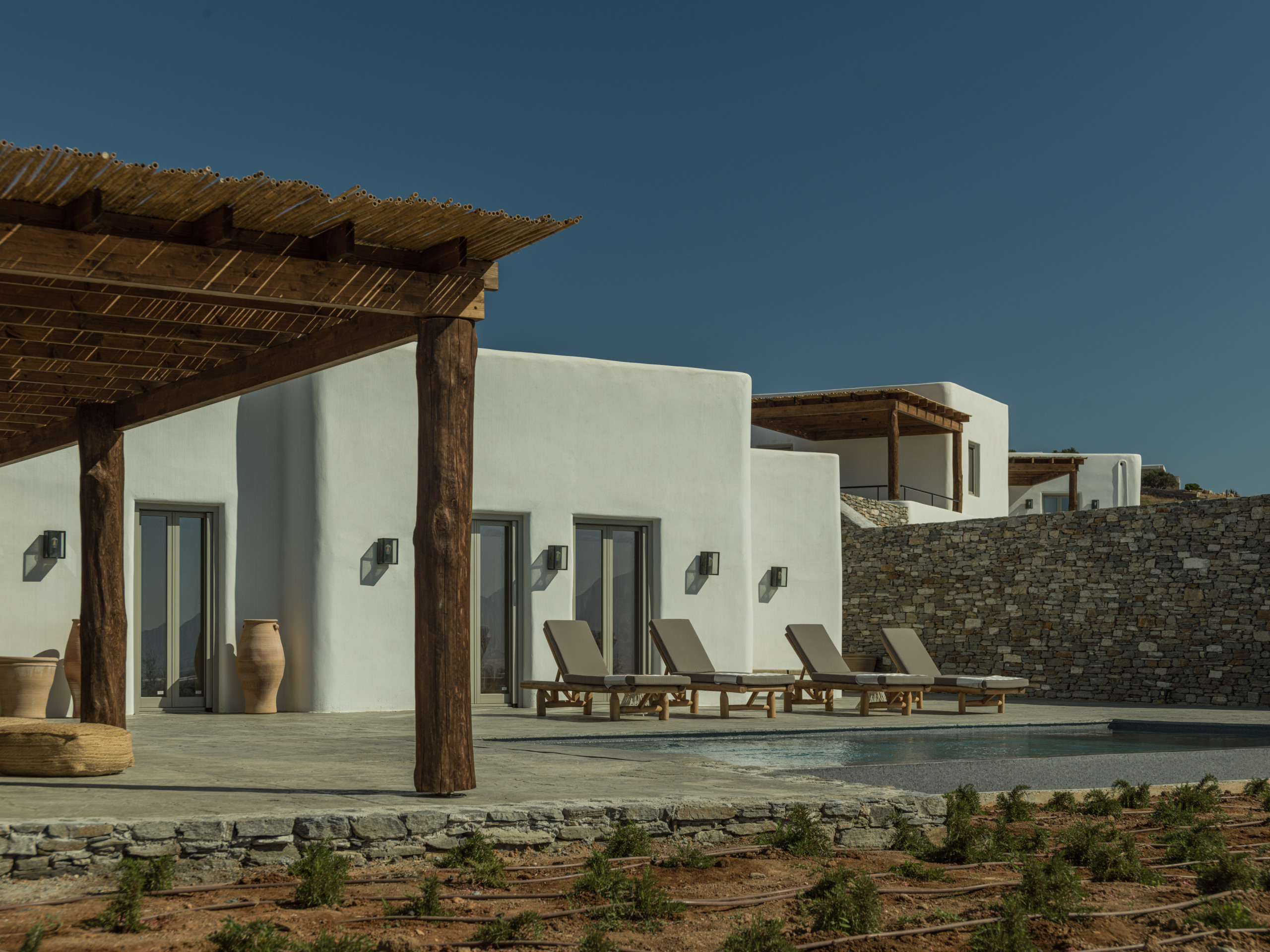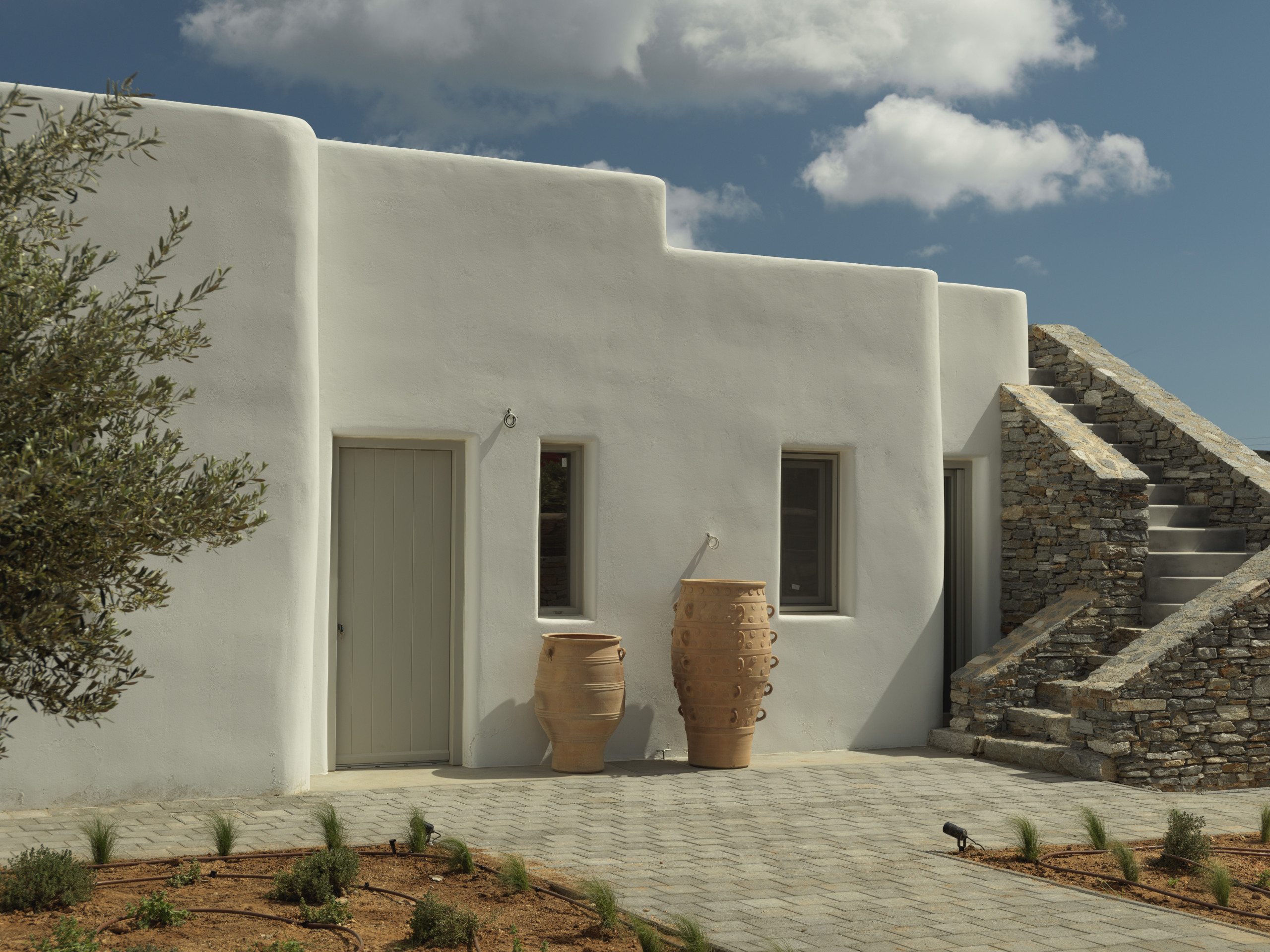 Having adopted the traditional Cycladic architecture but with a distinct stylistic pro-file each one, the 3 houses of the complex feature fully equipped comfortable spac-es, welcoming outdoor facilities with a private swimming pool and breathtaking views of the Aegean Sea.