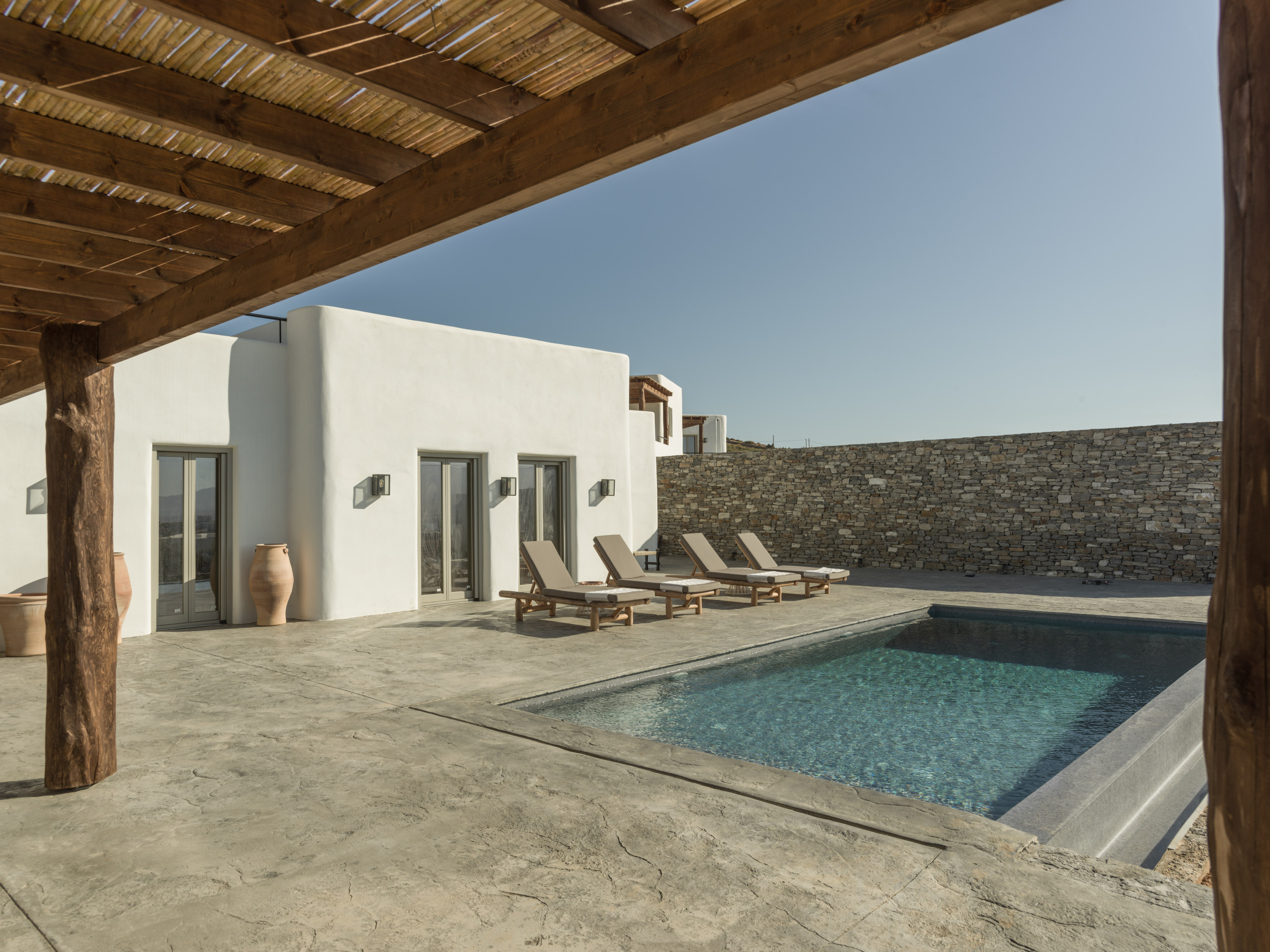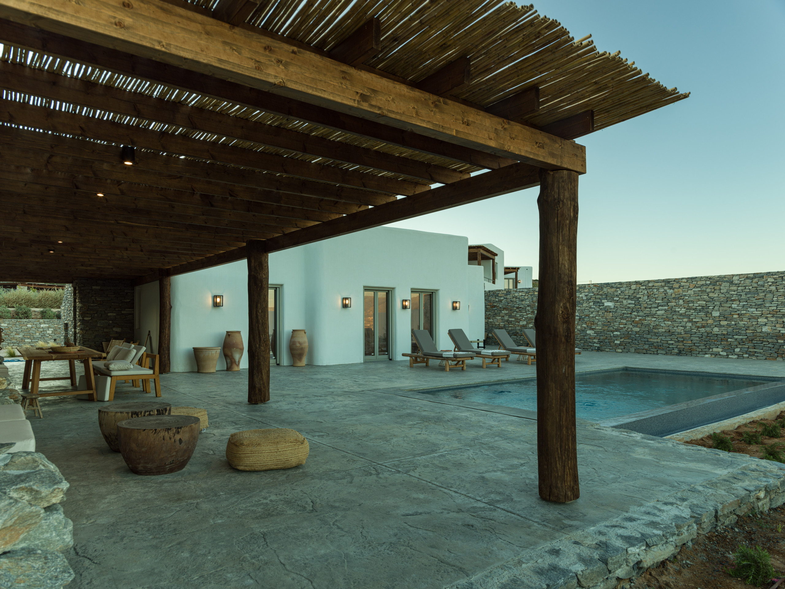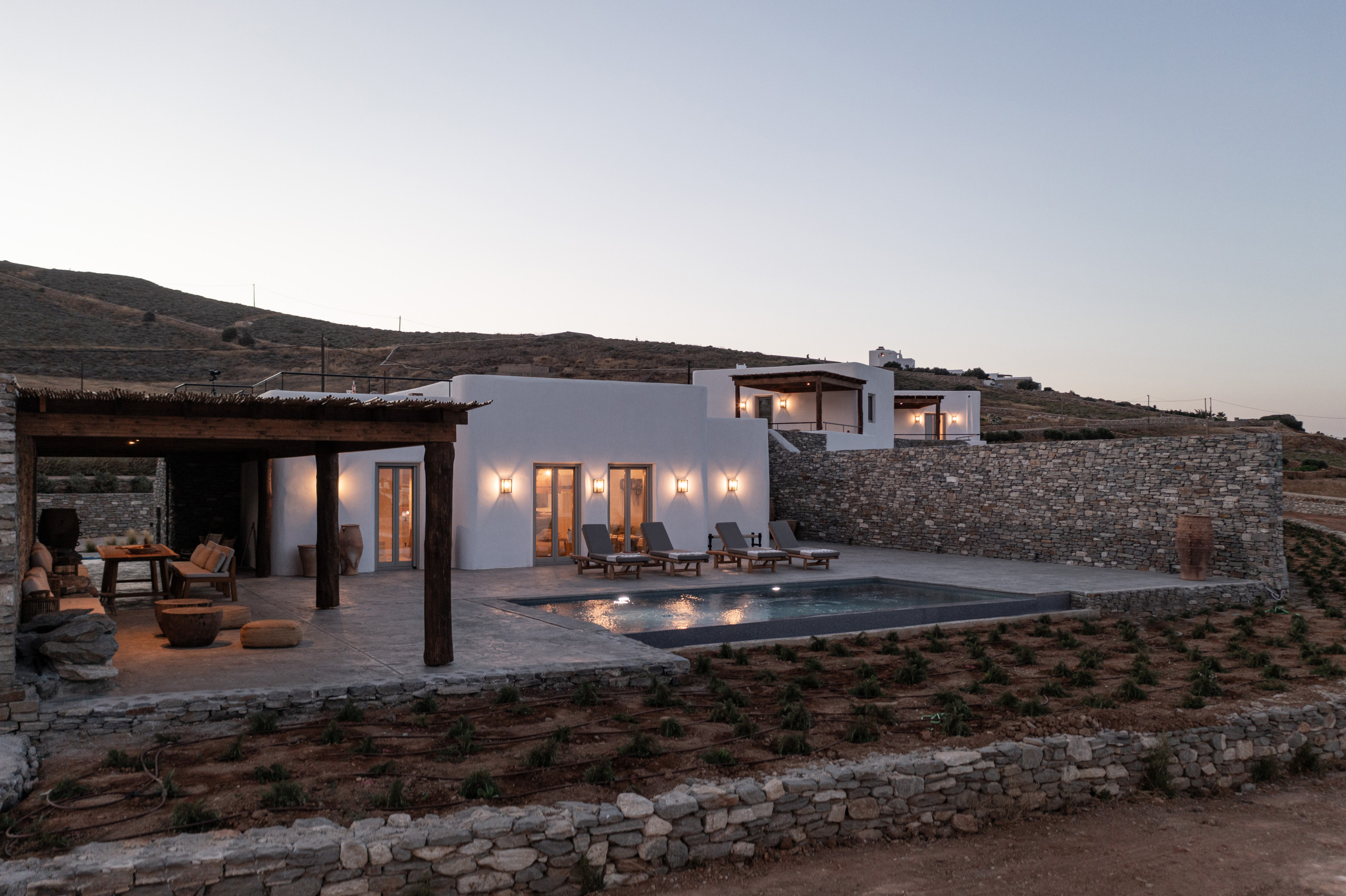 Having adopted the traditional Cycladic architecture but with a distinct stylistic pro-file each one, the 3 houses of the complex feature fully equipped comfortable spac-es, welcoming outdoor facilities with a private swimming pool and breathtaking views of the Aegean Sea.