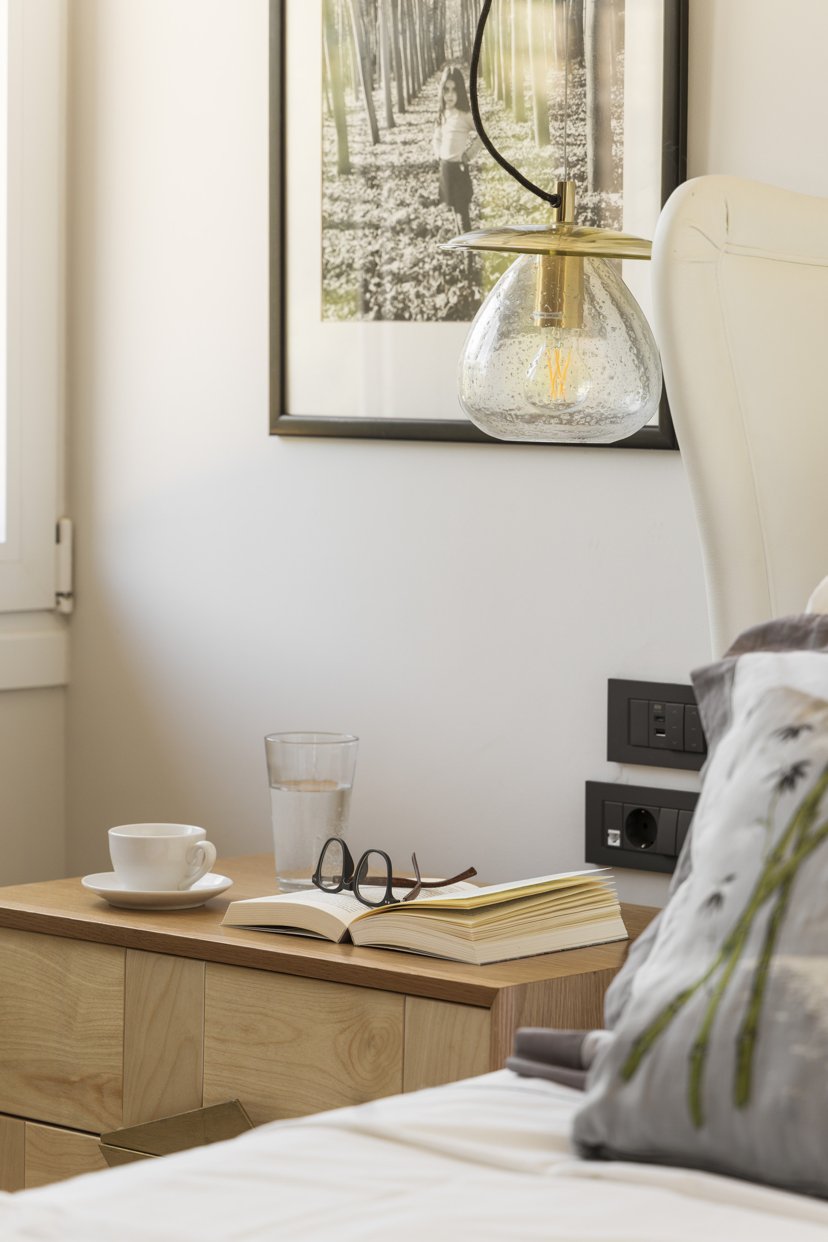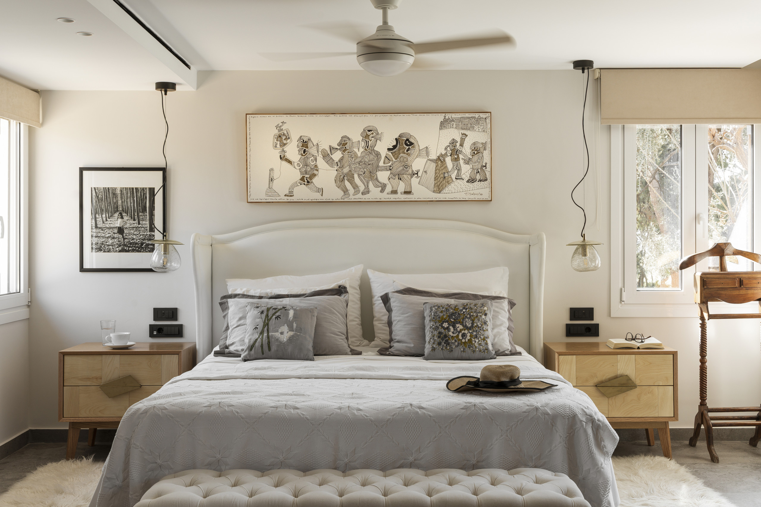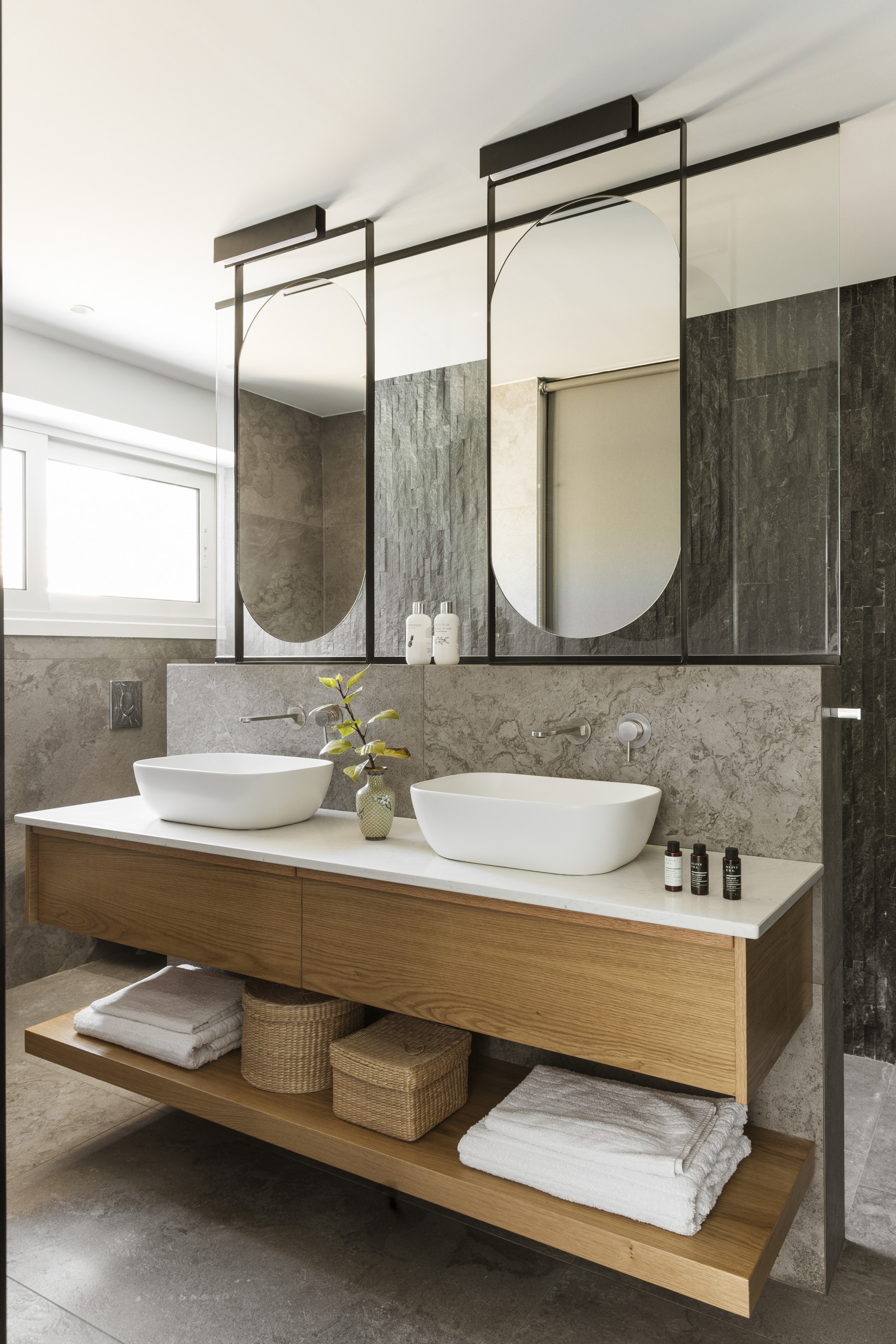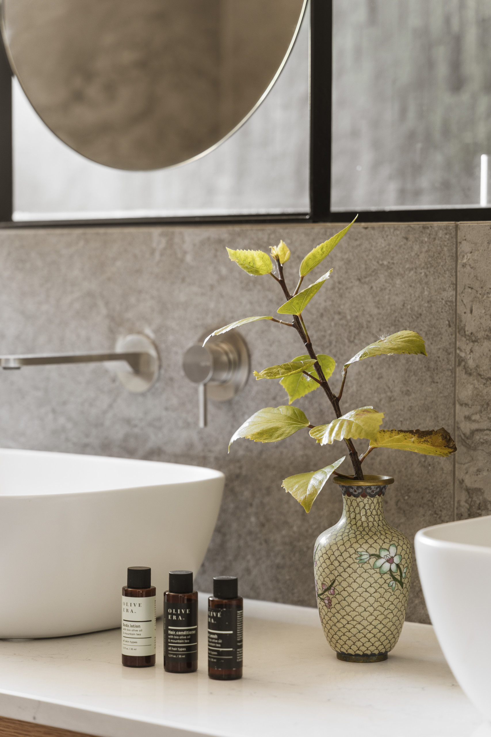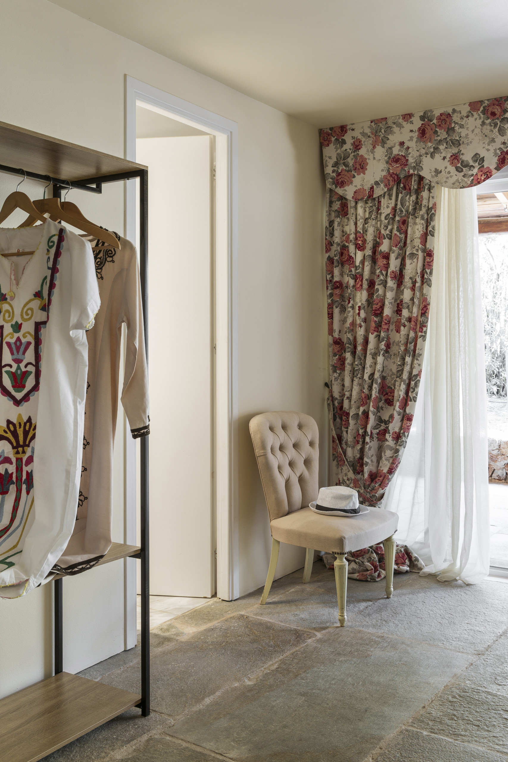 The villa is layered like a story. Below, cool and calm, bedrooms open onto the garden, private, restful, close to the earth. Above, a room touches the sky, its balcony suspended between sea and silence. Around the villa, independent guest suites offer their own rhythm, intimate spaces where each morning begins with a view of water and sky.