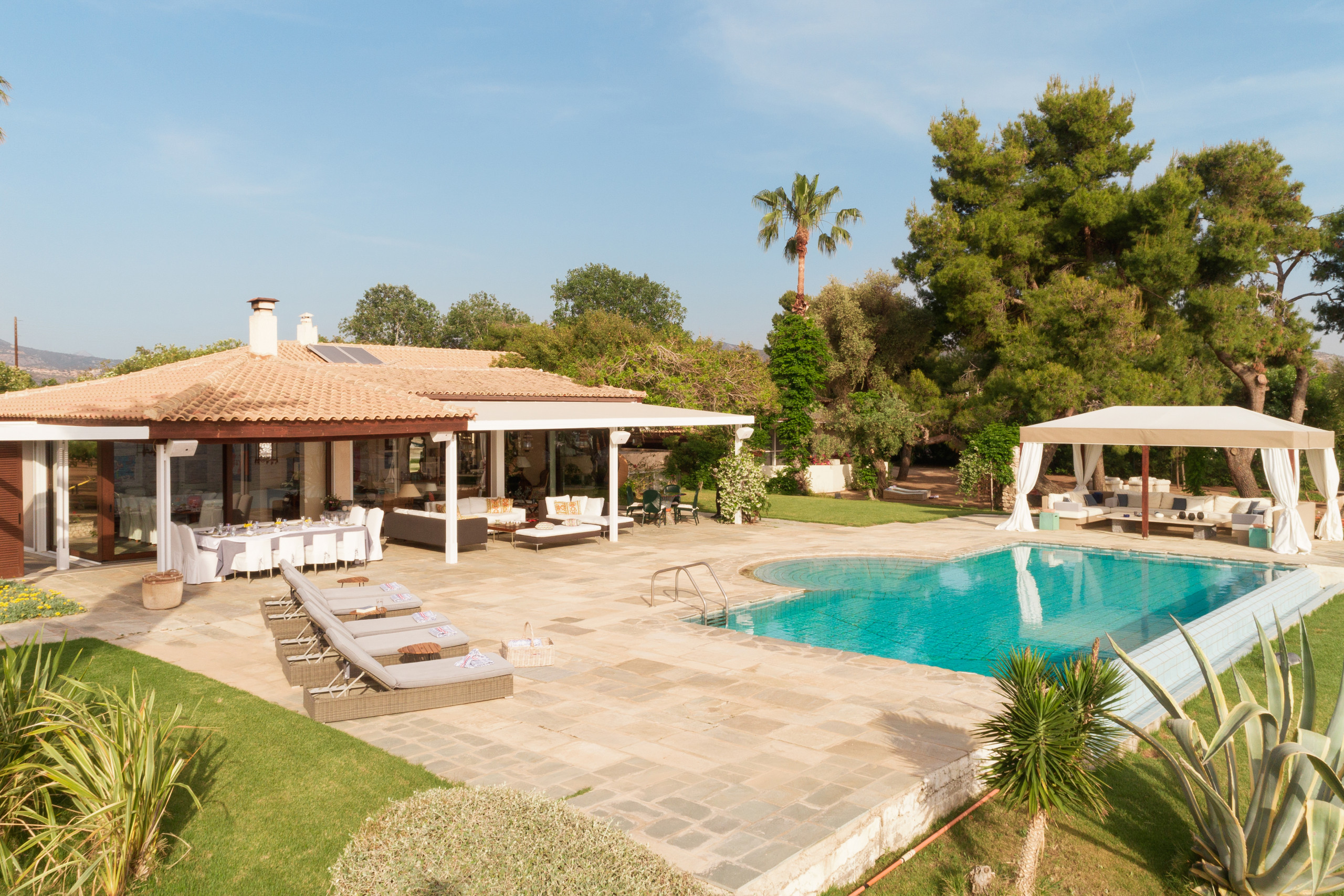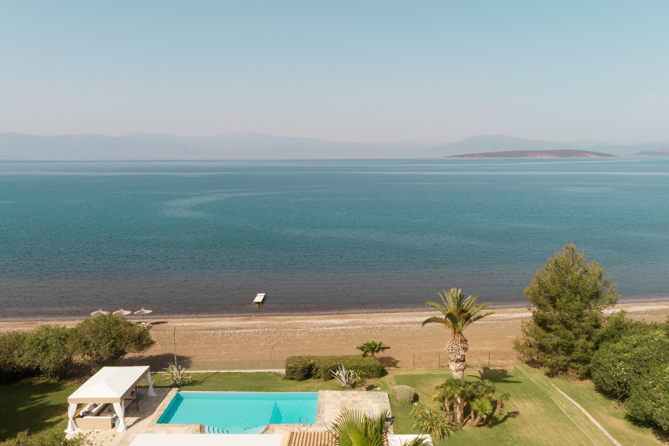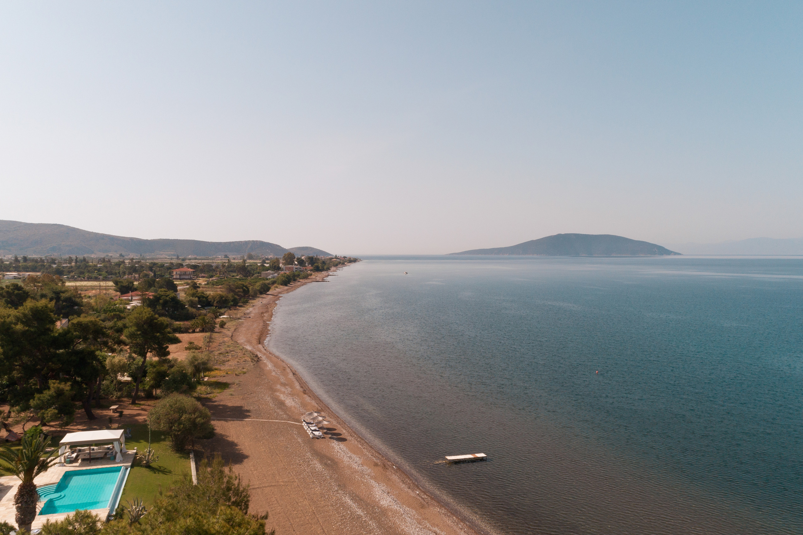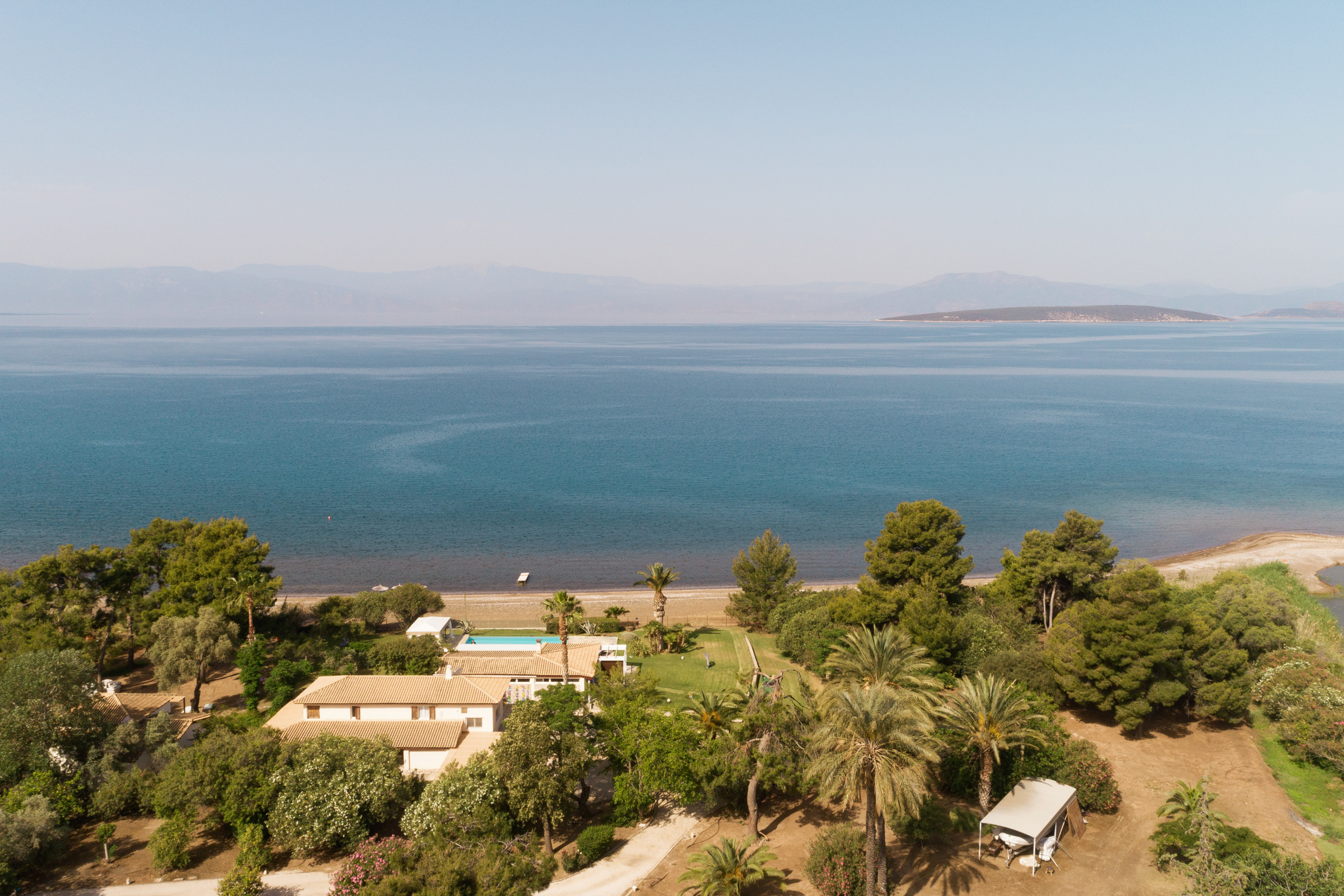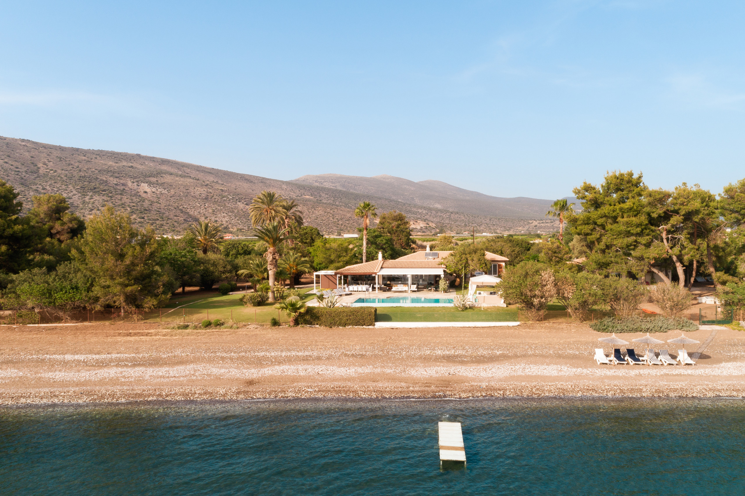 Between the soft curves of sunburnt hills and the endless blue of the Argolic Gulf, this villa rests like a quiet secret, where mornings arrive with the shimmer of light on water and evenings dissolve into gold.