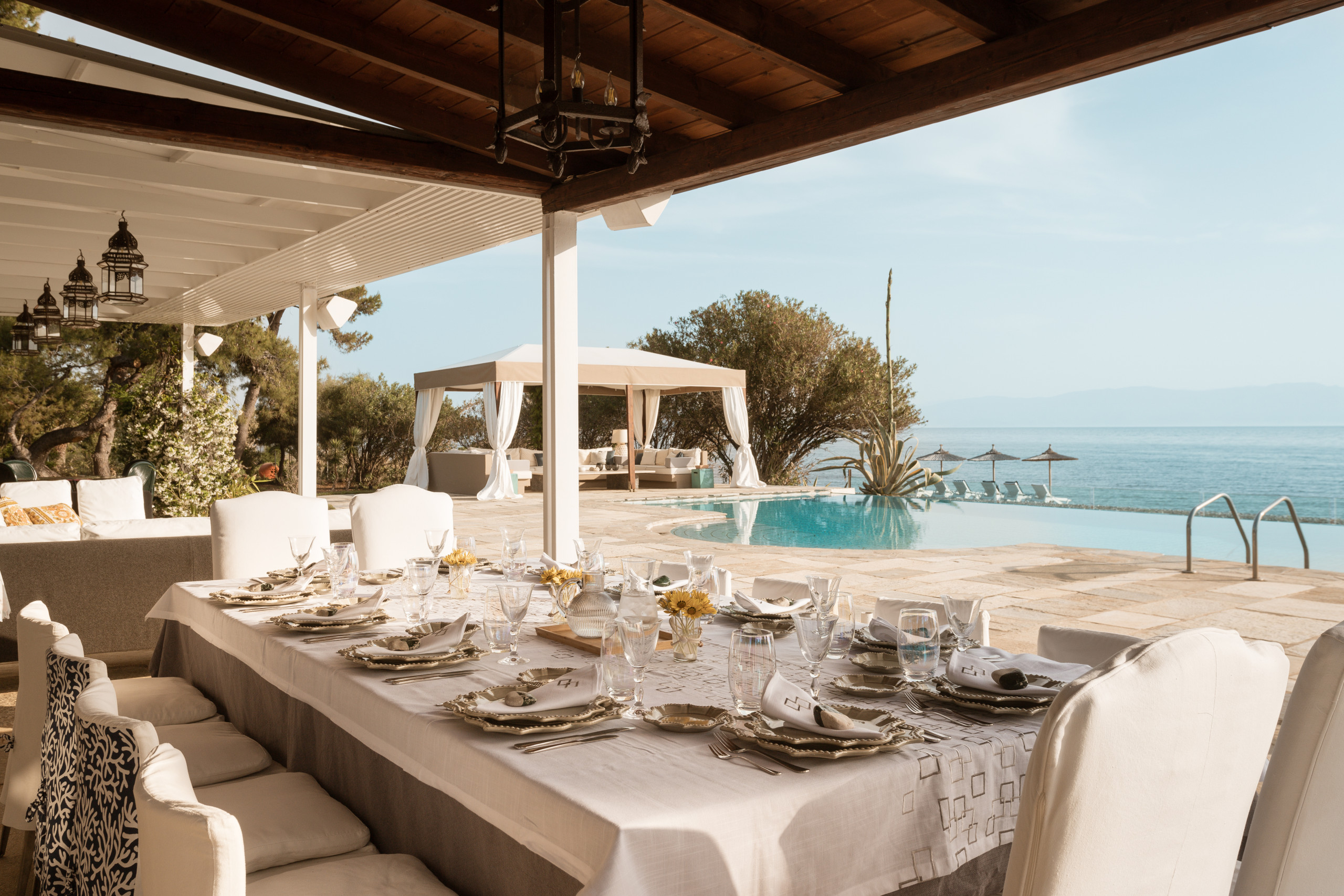A few steps lead you to the beach, your own stretch of shoreline, where the sea is never distant, only waiting. Days drift between swims, sunlit stillness, and the soft hush of waves.